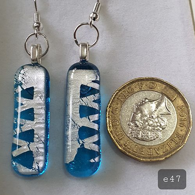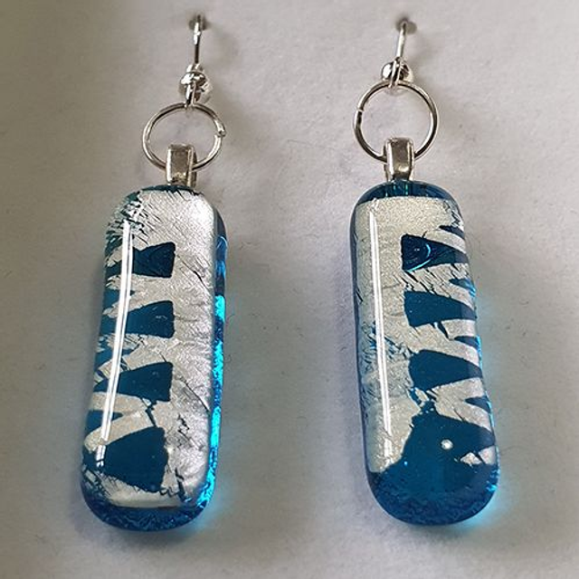 Fused glass earrings made from glass sheets that I fuse together in my kiln at high temperatures (between 800-900⁰C.)