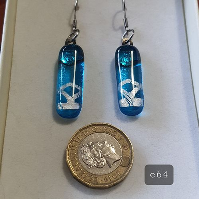 Fused glass earrings made from glass sheets that I fuse together in my kiln at high temperatures (between 800-900⁰C.)