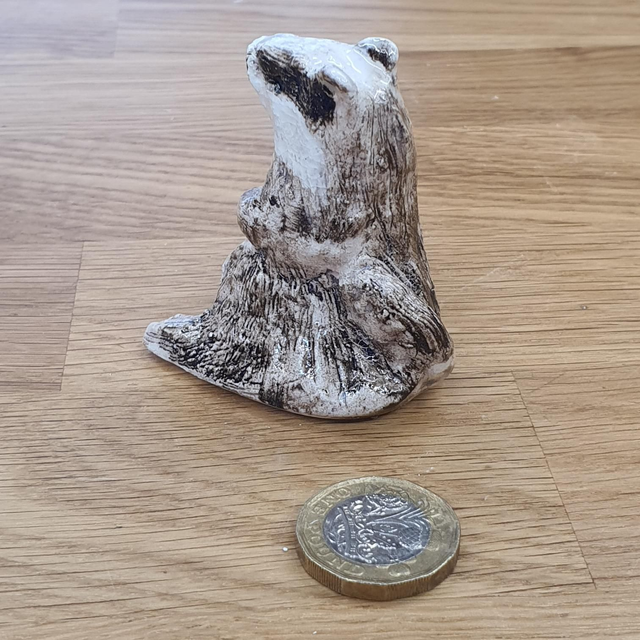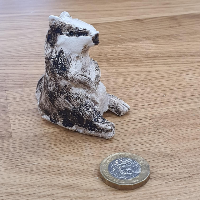 Pieces are modelled in clay, coloured using slips, glazes, stains and oxides and fired twice in a kiln up to 1300'C.