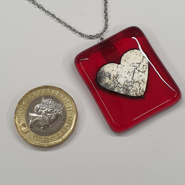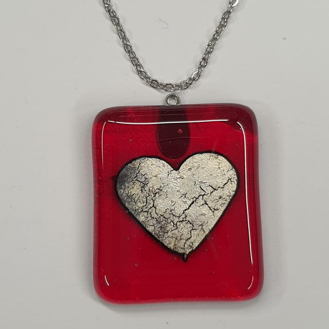 Fused glass pendant made from glass sheets that I fuse together in my kiln at high temperatures (between 800-900⁰C.)
