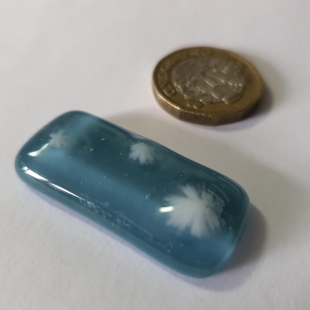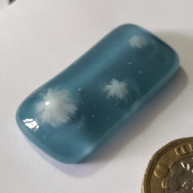 Fused glass pendant made from glass sheets that I fuse together in my kiln at high temperatures (between 800-900⁰C.)