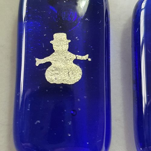 I often fuse precious metal designs within the glass or use textures. Sometimes pieces have a different colour or texture on each side - see photos for details.
