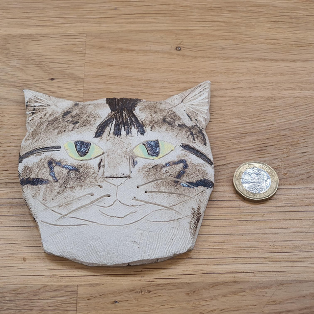 Made from clay and coloured using slips, stains and glazes and fired twice to 1100-1200°C in my kiln (electricity from renewable sources).