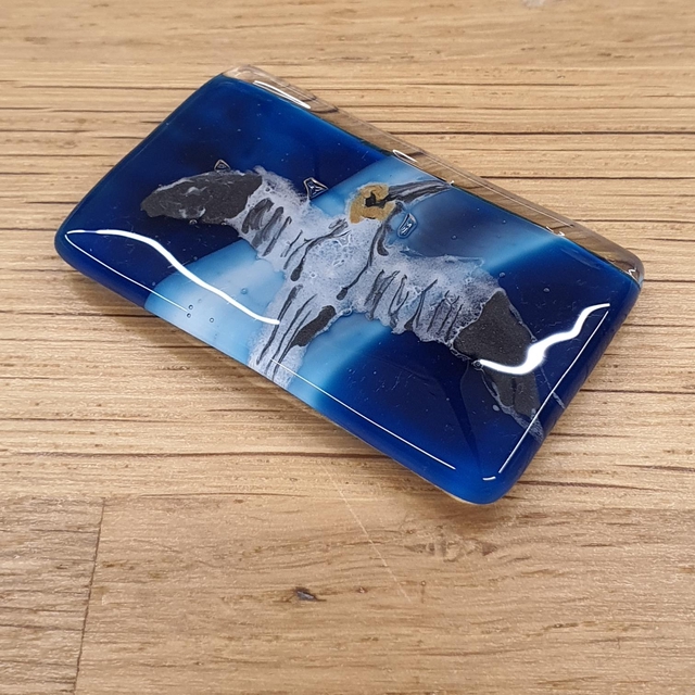 Fused glass badge made from glass sheets that I fuse together in my kiln at high temperatures (between 800-900⁰C.)