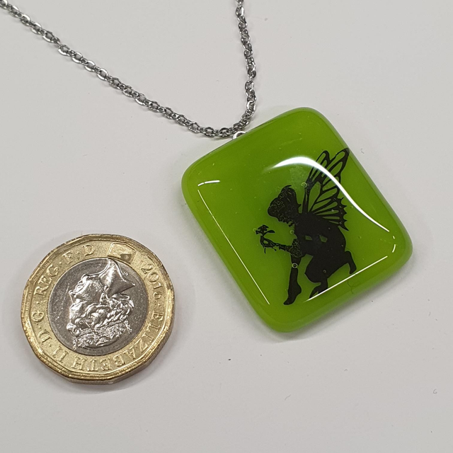 Fused glass pendant made from glass sheets that I fuse together in my kiln at high temperatures (between 800-900⁰C.)