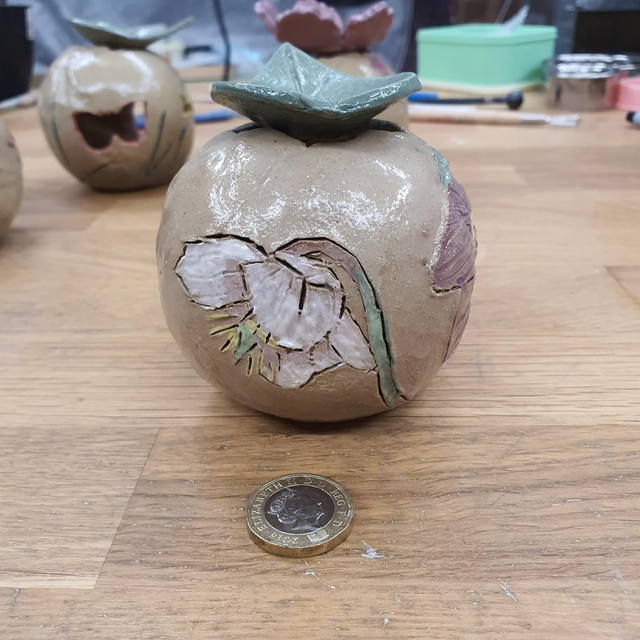 Hellebore design with 3 plants painted around a spherical tealight holder.
