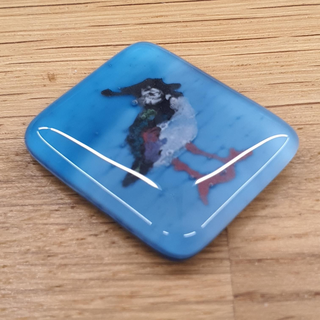 Fused glass badge made from glass sheets that I fuse together in my kiln at high temperatures (between 800-900⁰C.)