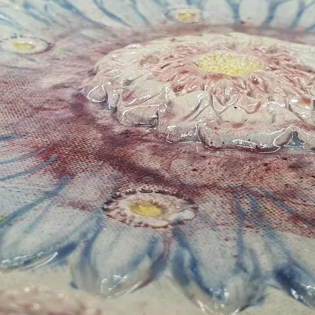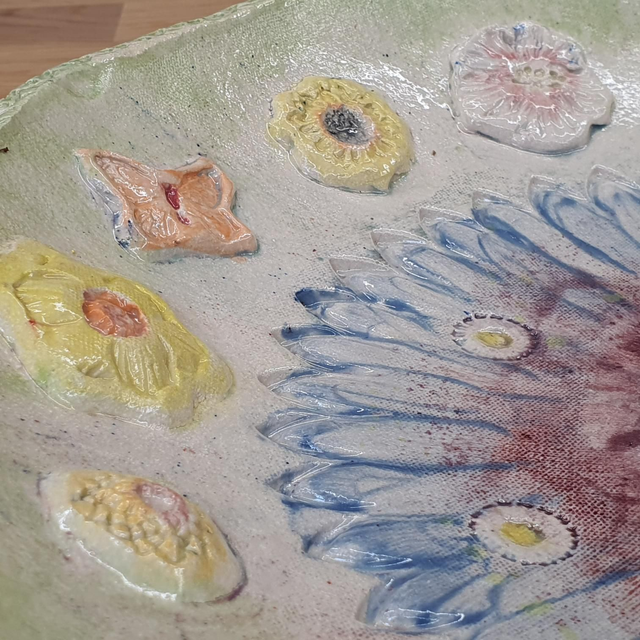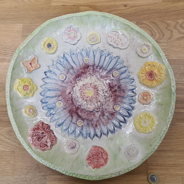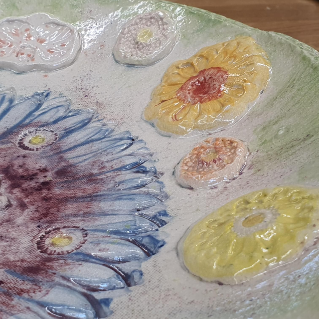 Made from clay that is coloured using slips, stains and glazes before being fired twice in my kiln up to 1200'C.