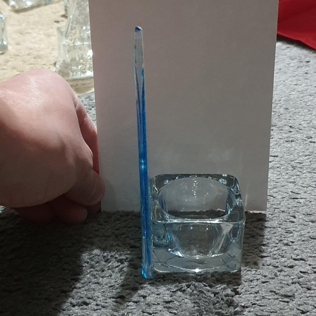 Glass tealight holders in form of a Christmas tree.