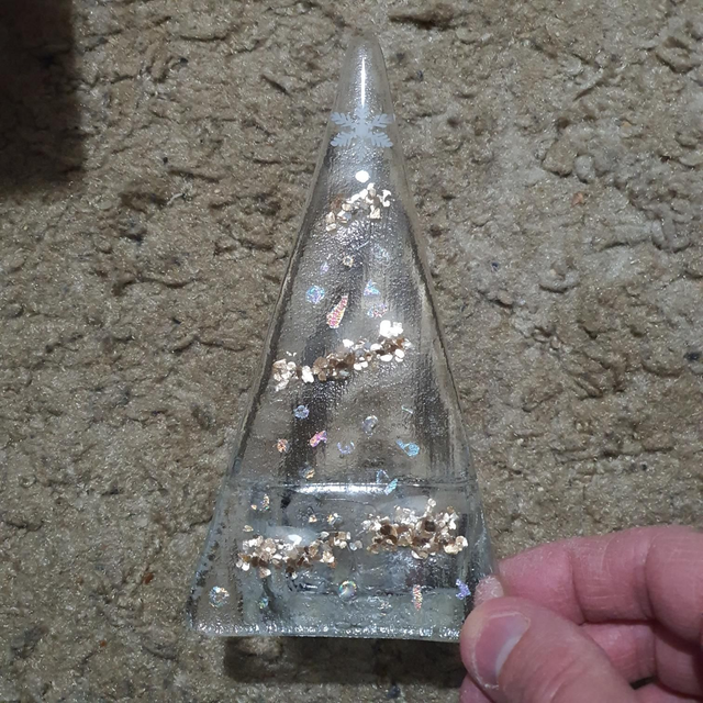 Medium Glass Xmas tree tealights - clear gold tinsel and rainbow colours