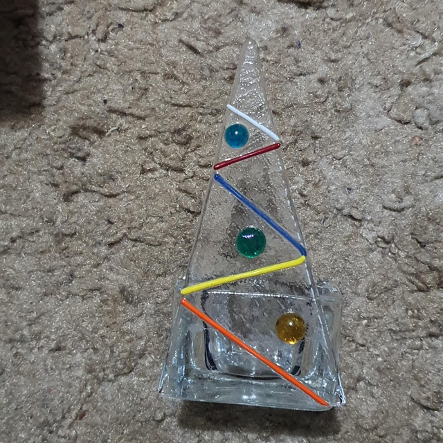 Medium Glass Xmas tree tealights - zigzag & baubles