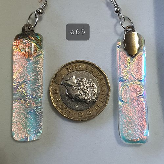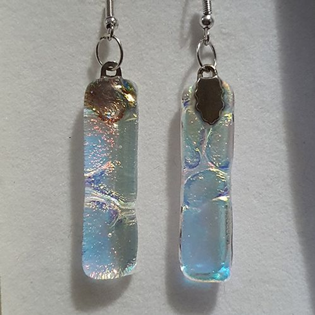 Fused glass earrings made from glass sheets that I fuse together in my kiln at high temperatures (between 800-900⁰C.)