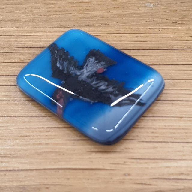 Fused glass badge made from glass sheets that I fuse together in my kiln at high temperatures (between 800-900⁰C.)