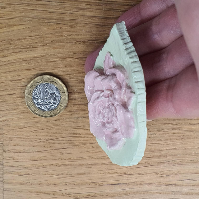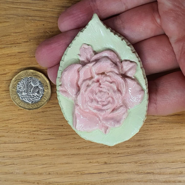 Pink rose on leaf badge
