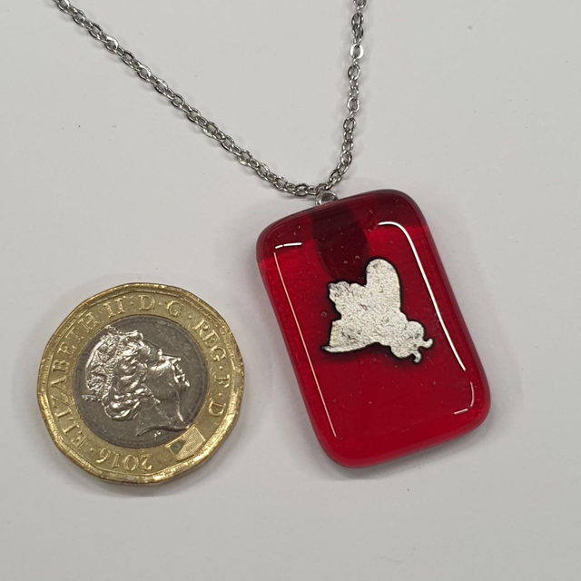 Fused glass pendant made from glass sheets that I fuse together in my kiln at high temperatures (between 800-900⁰C.)