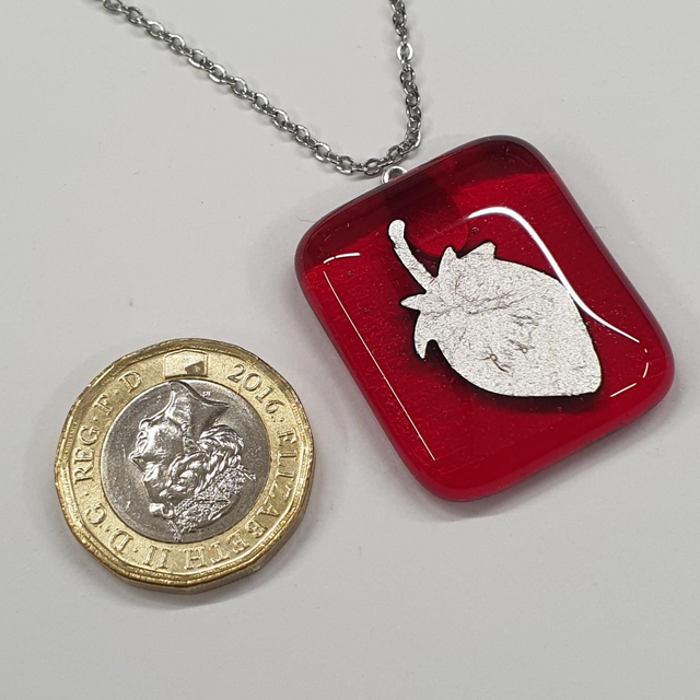 Red and silver strawberry pendant NEW