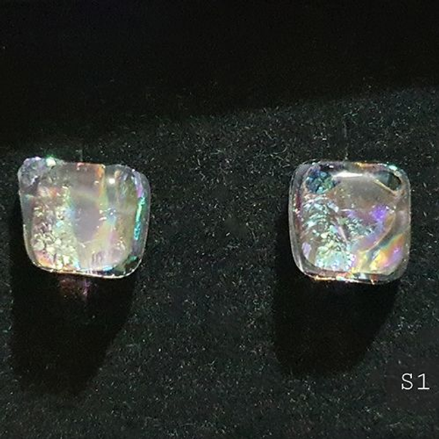 Fused glass stud earrings made from glass sheets that I fuse together in my kiln at high temperatures (between 800-900⁰C.)