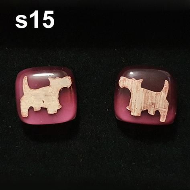 S15 Westie / Scotty dog on deep pink glass stud earrings