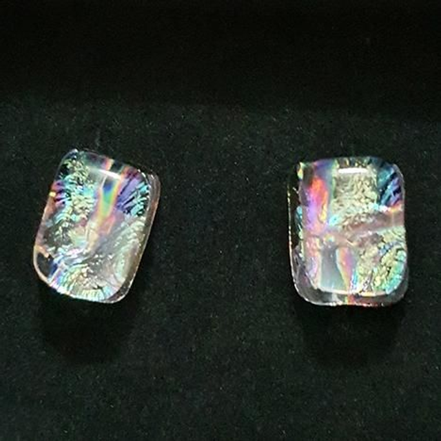 Fused glass stud earrings made from glass sheets that I fuse together in my kiln at high temperatures (between 800-900⁰C.)