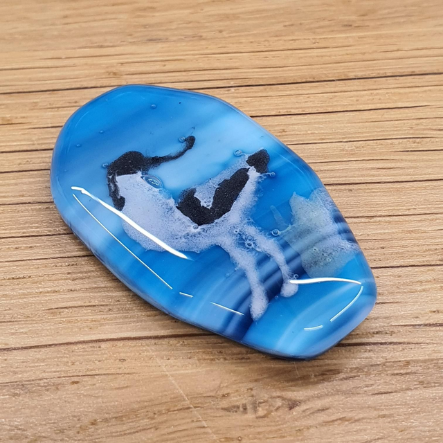 Fused glass badge made from glass sheets that I fuse together in my kiln at high temperatures (between 800-900⁰C.)